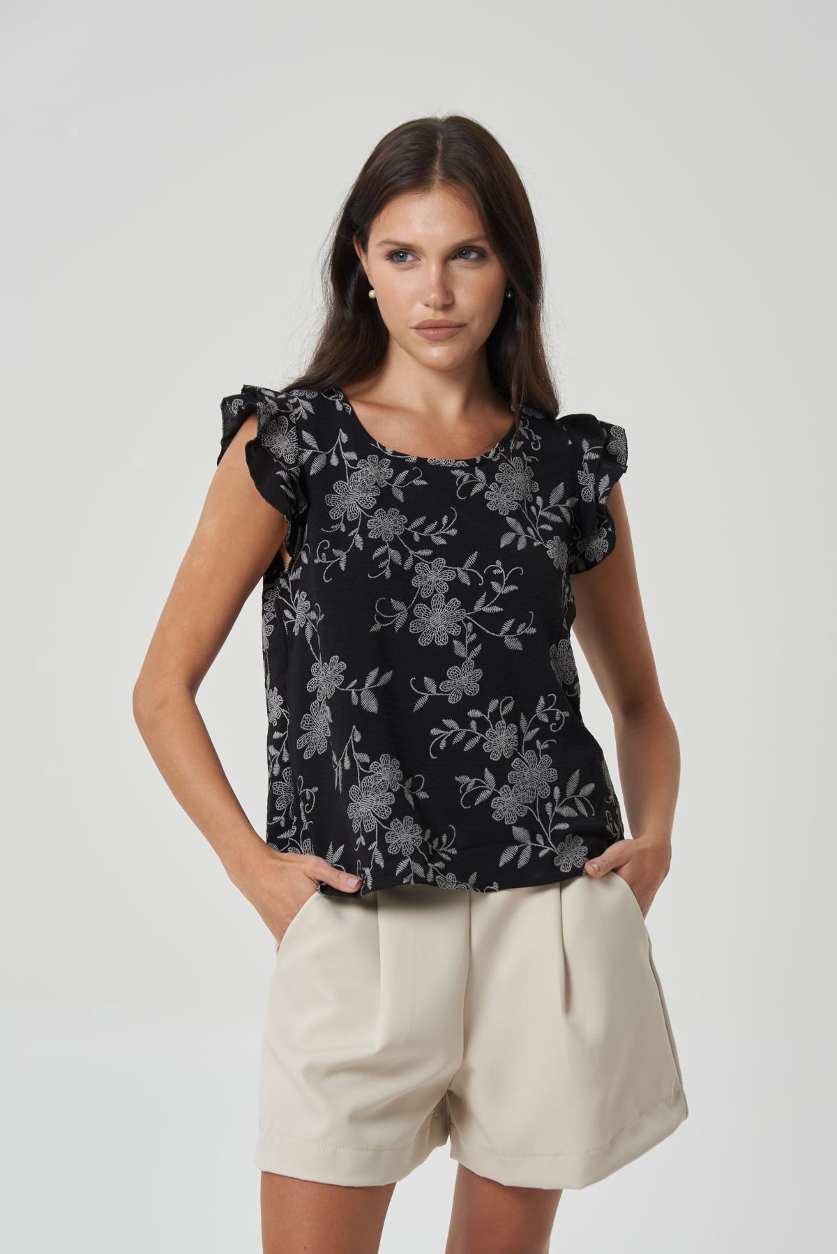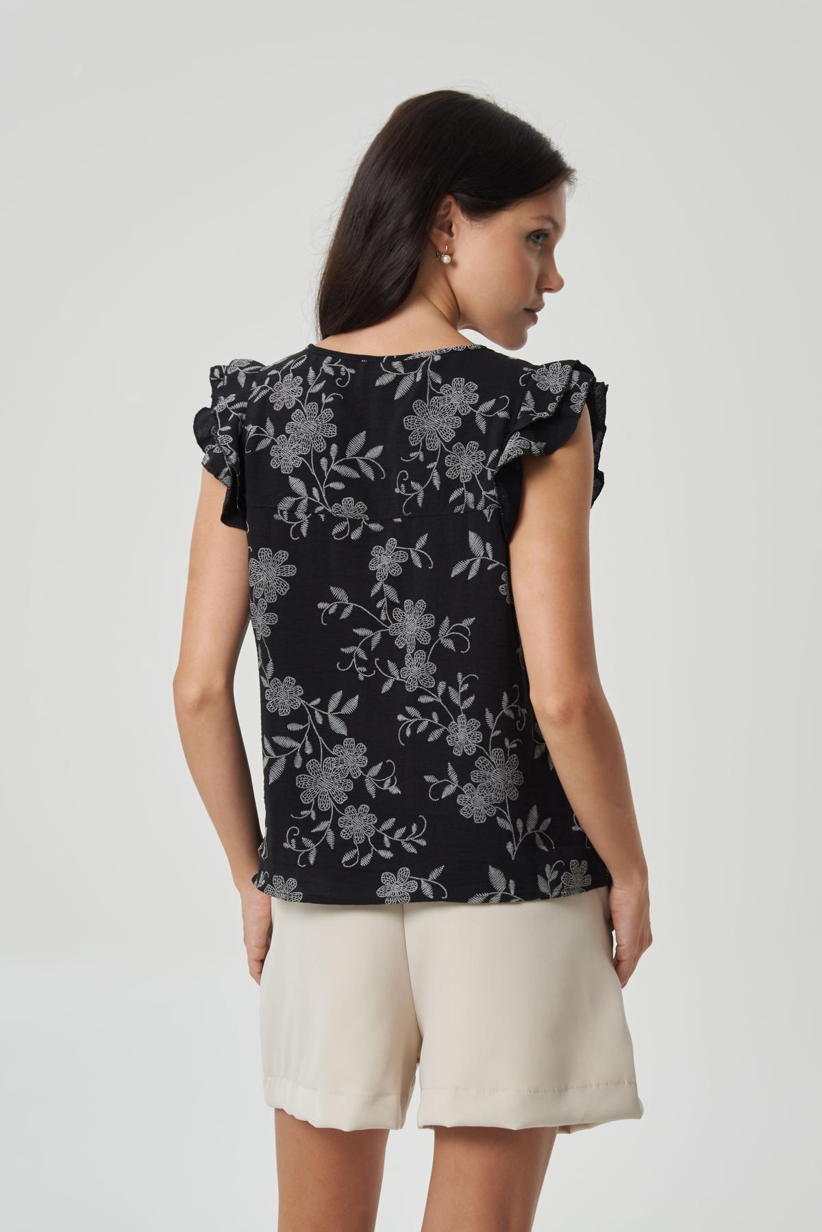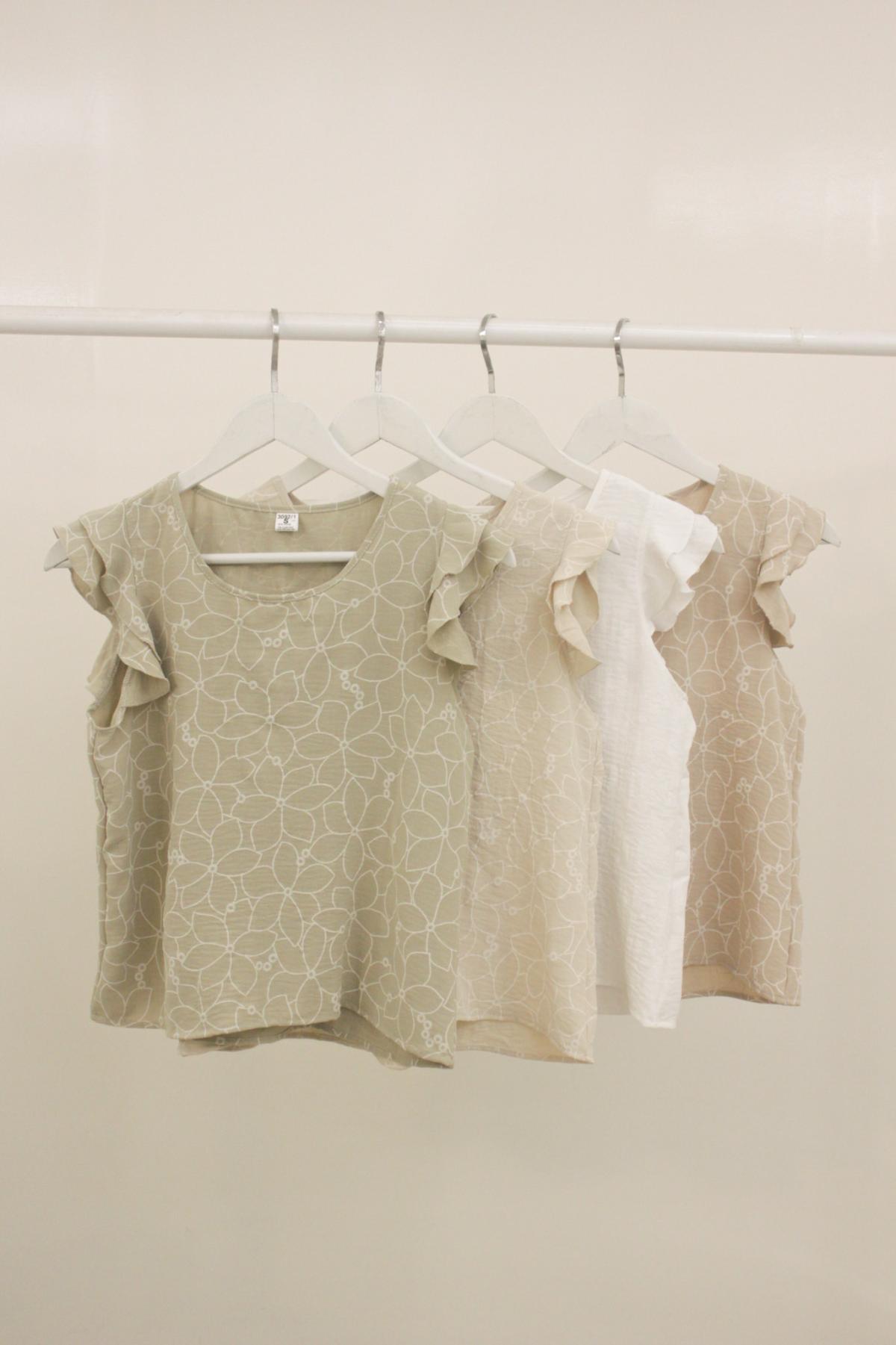 Blusa Elowen.Cey bordado manga doble c/ volado Art.3092