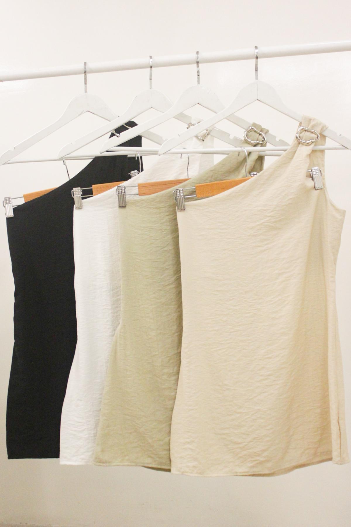 Vestido Mireth.Arrugadita un hombro c/ hebilla y cierre al costado art.30133